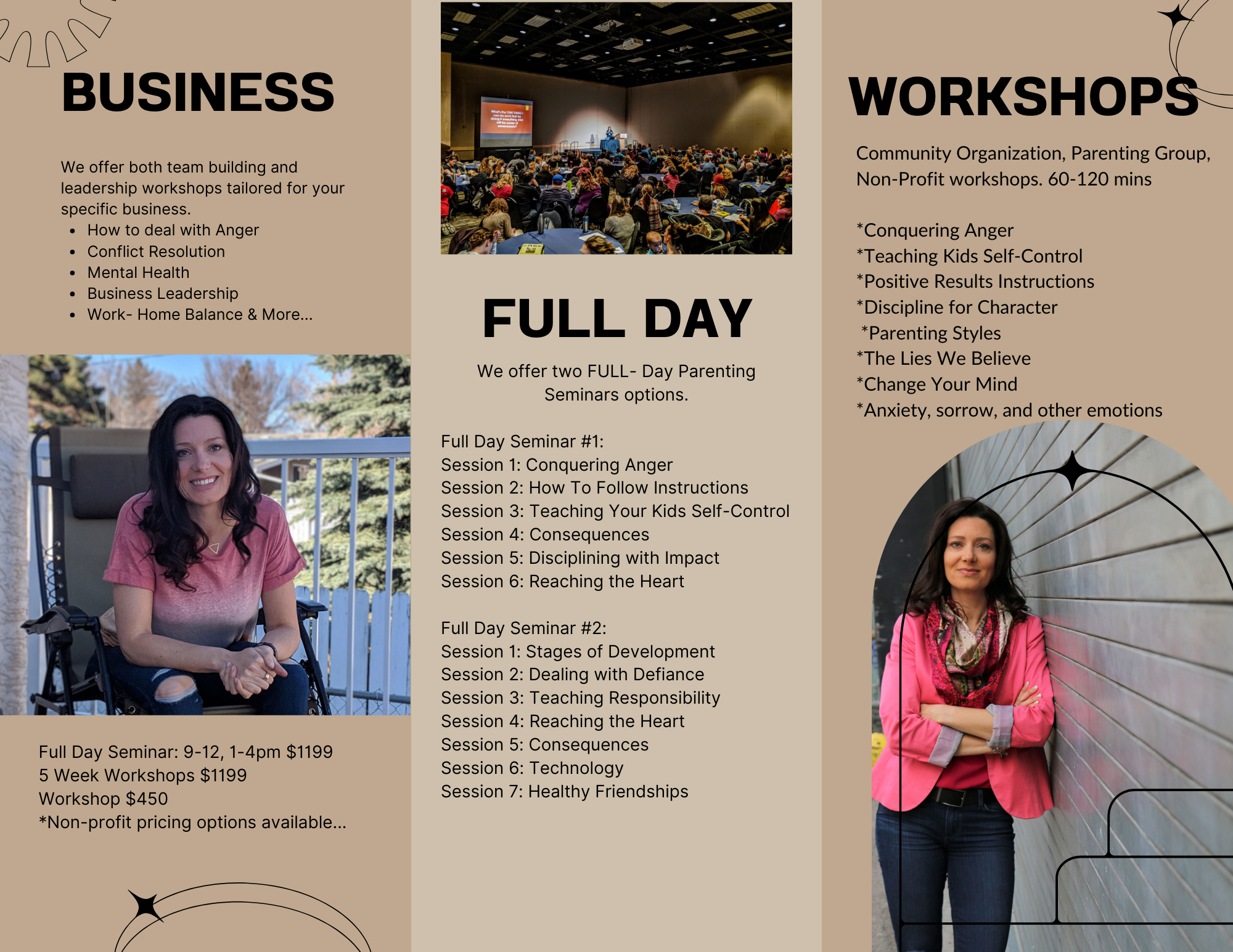 Planning your next small group, moms group, or community parenting workshop? Look no further. We offer 2 Full Day Seminars, and over 20 workshops.